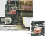 Broken guard on label press. Interlock has been overridden.