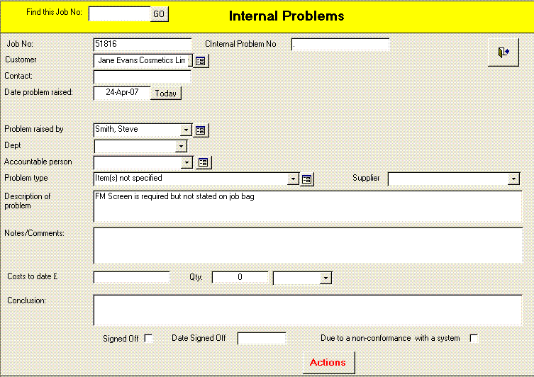 If the problem was caused by a non-conformance to a system, this can be designated as such by ticking the